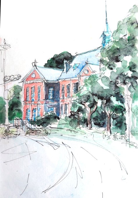 #りえこさん冒険の思い出 その654 東京。少し前まで、国立工芸館だった旧近衛師団司令部庁舎。そう言われて見れば、煉瓦造りの建物は、歴史が感じられる〜かな? #絵 #旅 #水彩画 #スケッチ #watercolor #工芸館 minne.com/ritakahashi4 rieko44.base.shop