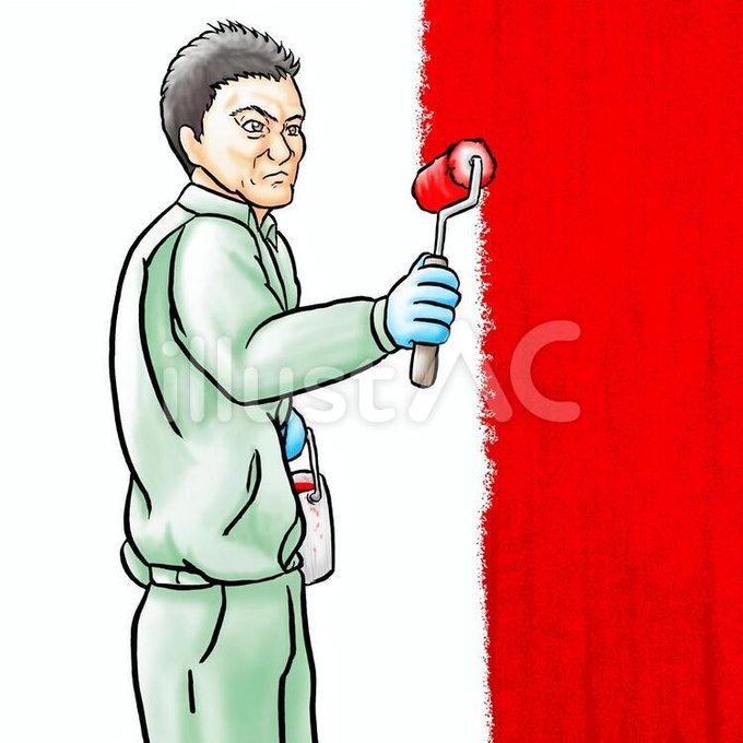 塗装職人・赤ペンキ ac-illust.com/main/detail.ph… #イラストAC #左官 に続き #塗装業 #イラスト これも線画は紙にペンのアナログ。Photoshopで彩色です。 パソコンで線画も描いた方がもっと整った絵になると思いますが、どっちが良いでしょね? #フリー素材 #フリーイラスト #フリー素材イラスト