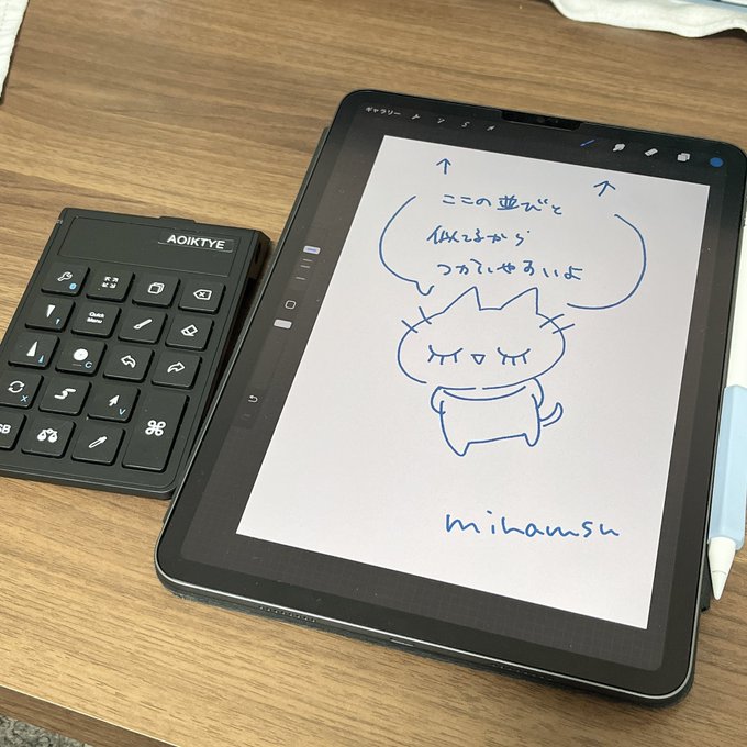 procreate専用左手デバイスを買いました。 範囲選択とか変形とか、いままでペンでわざわざタッチしに行ってたのが左手でぽちぽちするだけでいいので大変楽です!🖋 #イラスト #左手デバイス #procreate