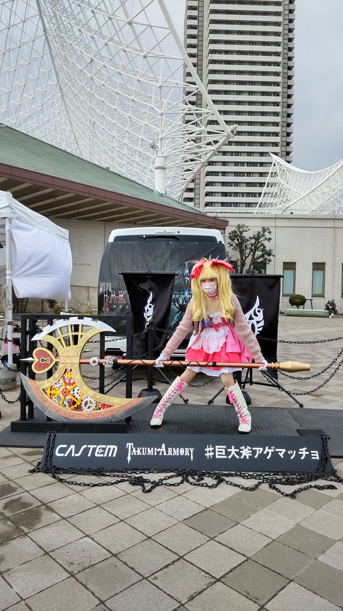 写真はカメラにあるのですが、#かみこす!で #巨大斧アゲマッチョ イベントに参加してきました。 クリスマスおわったからバレンタインコスのナルメアさん。 匠工芸さんの作品、素晴らしいものばかりでとても貴重な体験でした。 写真はひゆんゆアカウントにあげますー!