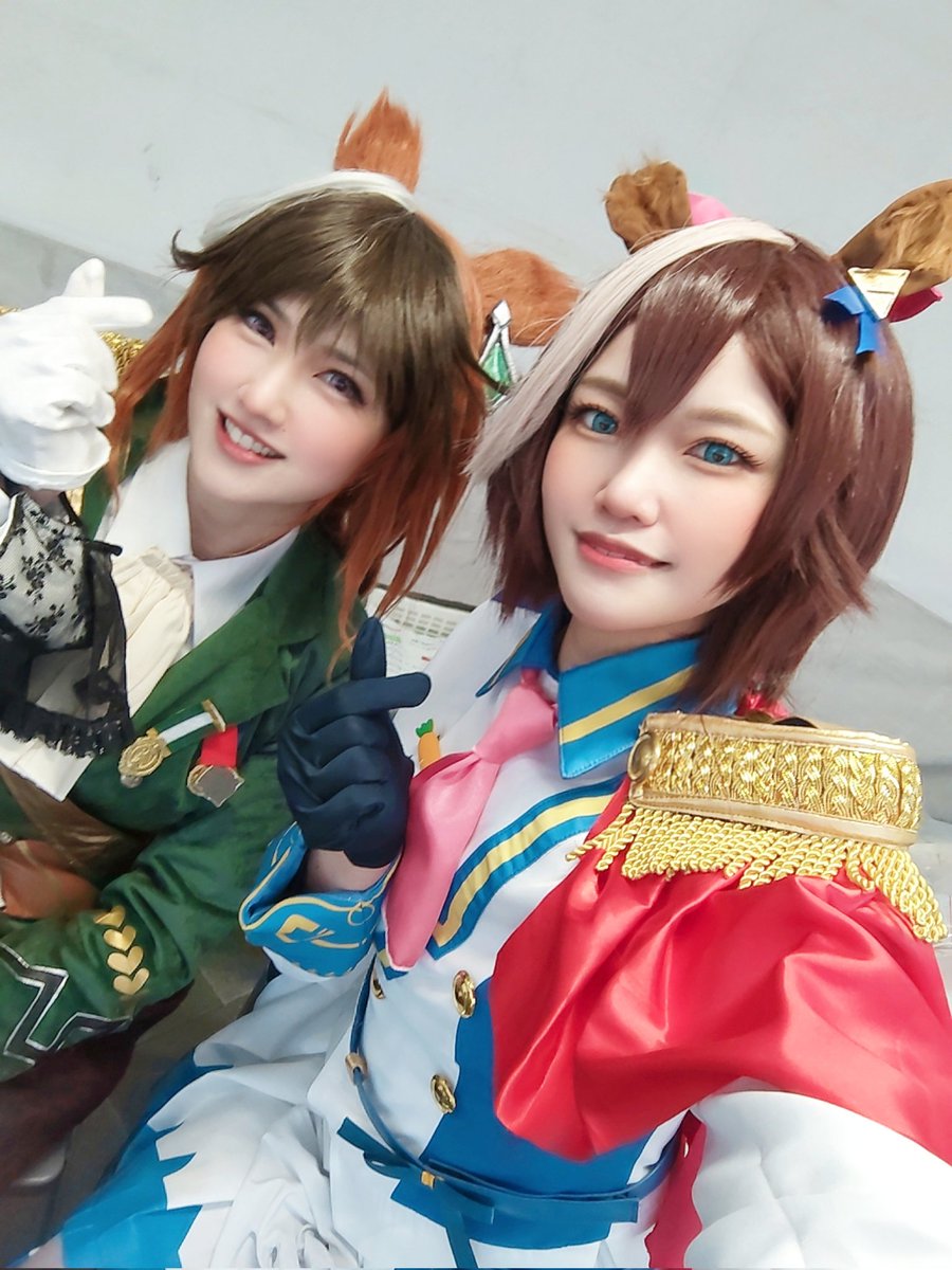 #かみこす お疲れ様でした🙌 そしてご心配をおかけしましたが、緊急搬送後も桃井は何とか生きて、今日もコスプレを楽しみました💁♀️✨ 細かいことを言うと大丈夫ではないのですが、細けぇこたぁいいんだよ☺️ 有馬記念親子制覇合わせ楽しかったです😎✨ #巨大斧アゲマッチョ もありがとうございました🙇♀️