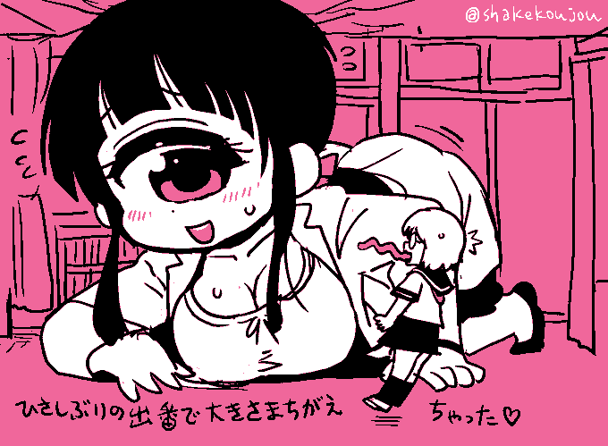 おはようございめゃす。 #起きらくがき 本日17時、最新話公開予定です〜 comic-ryu.jp/_hitomi/ 巨大なサイクロプスヒトミ先生が出てくる15巻も、よろしくお願い致します〜🦶amazon.co.jp/dp/4199507663/… #巨大娘 #巨女 #giantess twitter.com/shakekoujou/st…