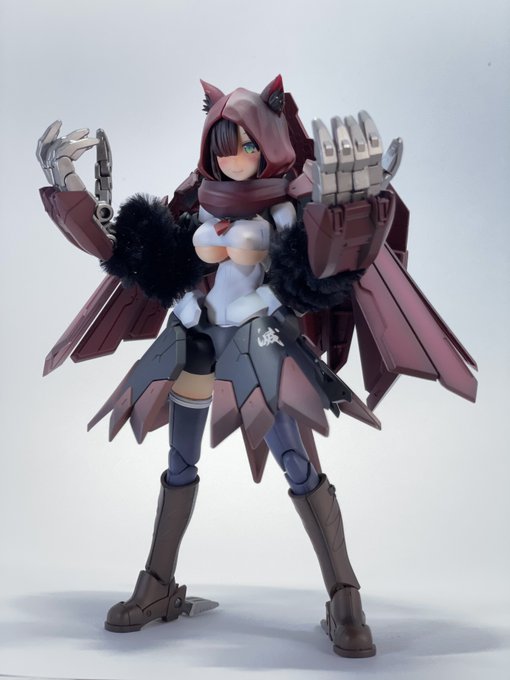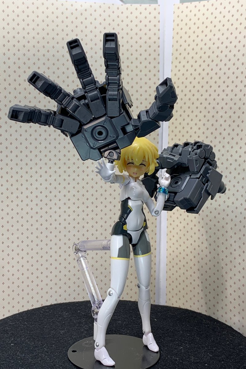 ウチのパワー担当「チャージャー」さん完成しました☆ 名前の通り突撃が得意な娘です(*^^*) ちなみにガール本体はフレズベースで制作してますが固定してるので全く可動しません(*´`) 可動するのは腕ぐらいでただの置物状態です笑 #FAガール #フレームアームズ・ガール #巨腕っていいよね