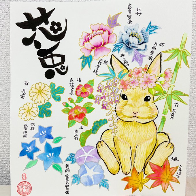 花兎完成しました🐰🌸 6/19〜長野県駒ヶ根キャンプセンター 7/11〜7/20愛知県岡崎市西三河師範会 にてこちらの作品を展示予定です🐰🌸 #己書 #水彩 #絵描きさんと繋がりたい #イラスト #illustration