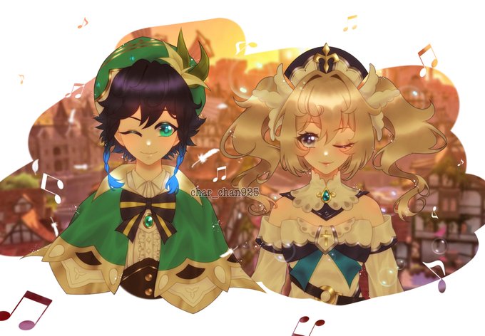 I present to you the musicians of Mondstadt: Venbara! Despite their opposing personalities, I think they would get along well because of their similar interest in music. #GenshinImapct #Genshinfanart #原神 #venti #barbatos #Barbara #温迪 #芭芭拉 #巴巴托斯 #ibisPaintX #ibispaint