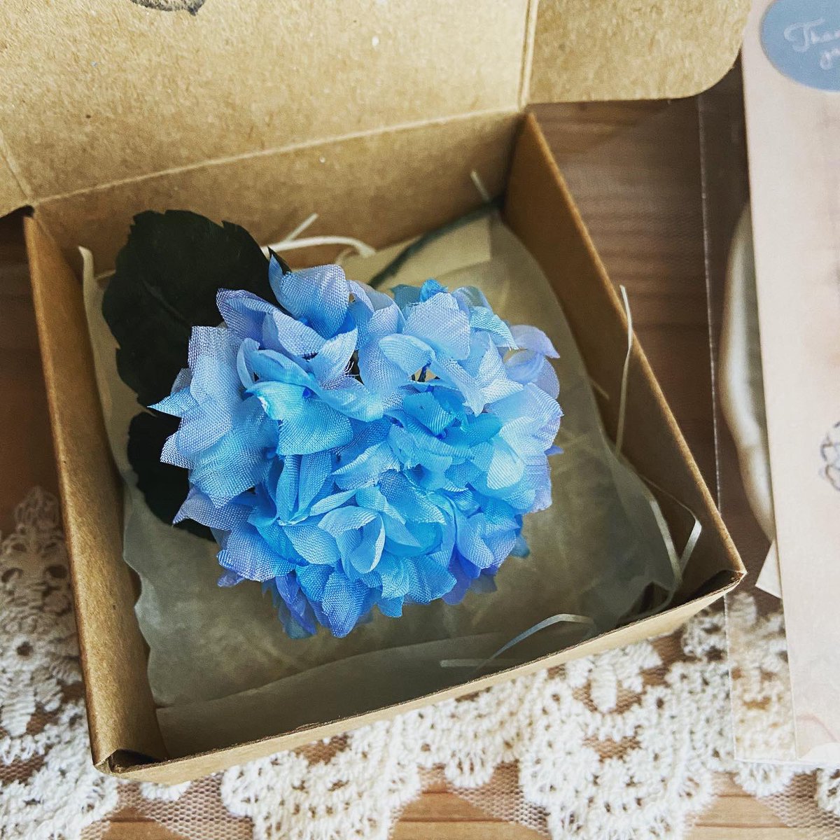 おはようございます☀ 本日発送分布花さんを包みました💠 水色の紫陽花は特集に取り上げていただいたものです✨ イベントでも販売予定なのでよかったら見に来てくださいね😌 #布花 #ハンドメイド好きさんと繋がりたい #イラスト #イラスト好きな人と繋がりたい #紫陽花 #アナベル #ハンドメイド