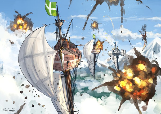 新しい絵の進捗。 背景の建物の情報量を増やしました。 これからは、雲と水面の反射に手を加えたいと思います。 #絵描きさんと繫がりたい #イラスト好きさんと繋がりたい #創作 #芸術同盟 #芸術の輪 #帆船 #イラスト