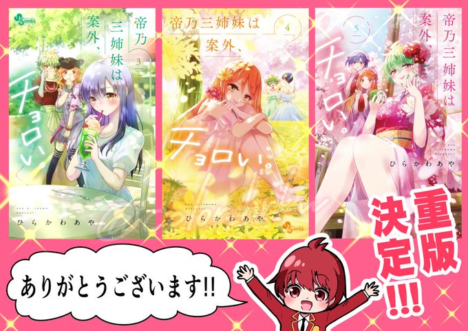 『帝乃三姉妹は案外、チョロい。』 3~5巻の重版が決定しました‼️🎊✨✨ お手にとってくださった皆様、本当にありがとうございます!!😌 気になってるけど まだ…という方は、この機会にぜひ! #ラブコメ #帝乃三姉妹は案外チョロい
