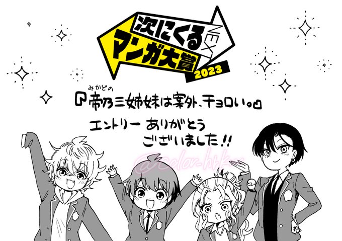 #次にくるマンガ大賞 2023のエントリー期間が終了しました! 『帝乃三姉妹は案外、チョロい。』を推してくださった皆様、本当にありがとうございます!!😌 ノミネートされたら とっても嬉しい~です! これからも作品を盛り上げていけるように頑張ります🙌 #帝乃三姉妹は案外チョロい