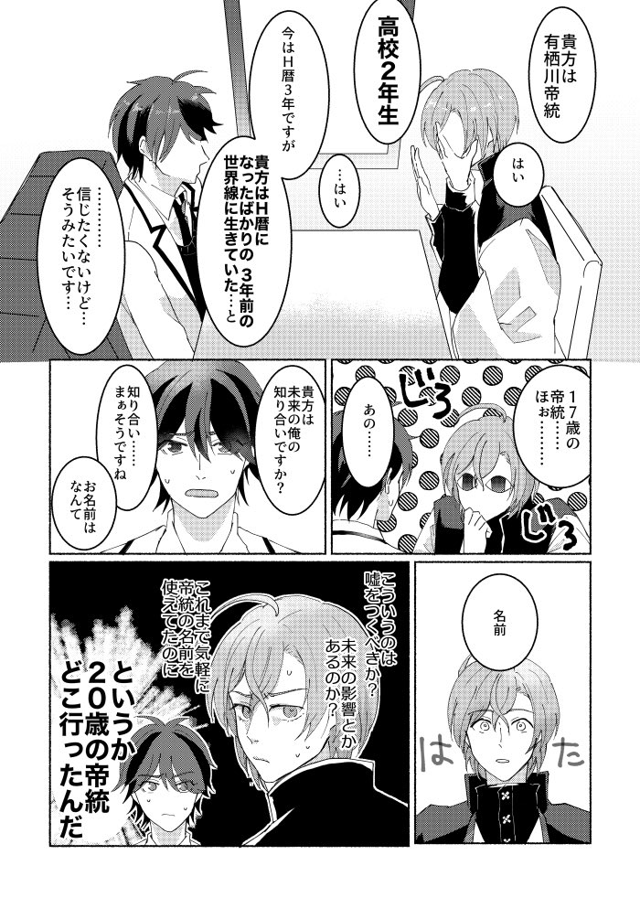 12/18発行の帝幻新刊です。44P/A5/500円予定 なぁなぁな関係の帝幻だったが、突然3年前の世界に生きていた🎲が📚の前に現れる。元の世界に帰る方法を考えようとした📚だが、🎲は帰りたくなさそうで… しぶ▶ pixiv.net/artworks/10343… 🐯▶ ecs.toranoana.jp/joshi/ec/item/… #帝幻本