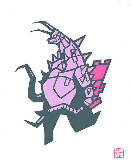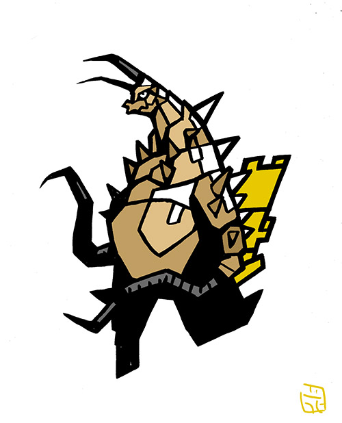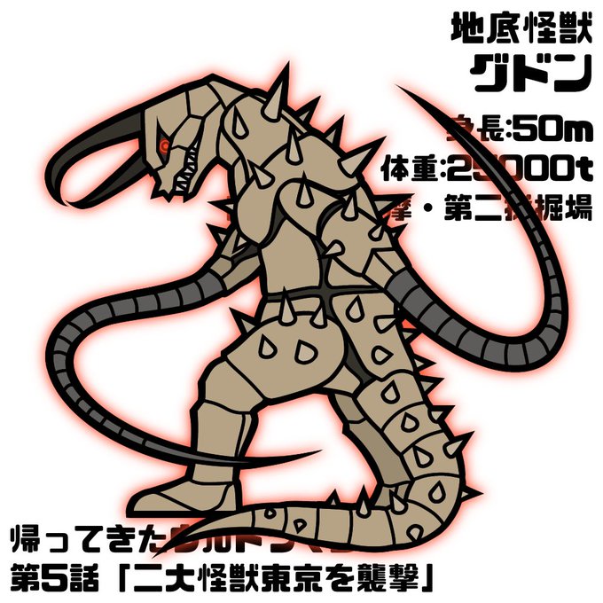 帰ってきたウルトラマンより、地底怪獣グドンを描いてみた。 鞭を振動させて岩を砕き地中を泳ぐという、凄まじい能力を持ったイケメン怪獣。好きな食べ物はツインテール。女の子の事ではない。 #ウルトラ怪獣 #帰ってきたウルトラマン