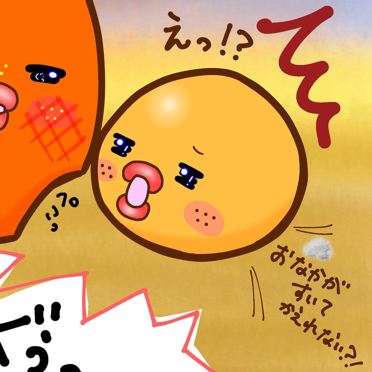 もぐーーーーっ…🥭 えっ!?おなかが すいて かえれない?! ぐー!?🍀 #お腹が空いて #帰れない #カロリー消費 #絵 #イラスト #illustration #illust #drawing #ゆるキャラ #日本列島ゆるキャラさんの旅 #見ていただきありがとうございます
