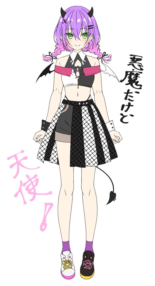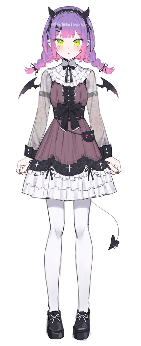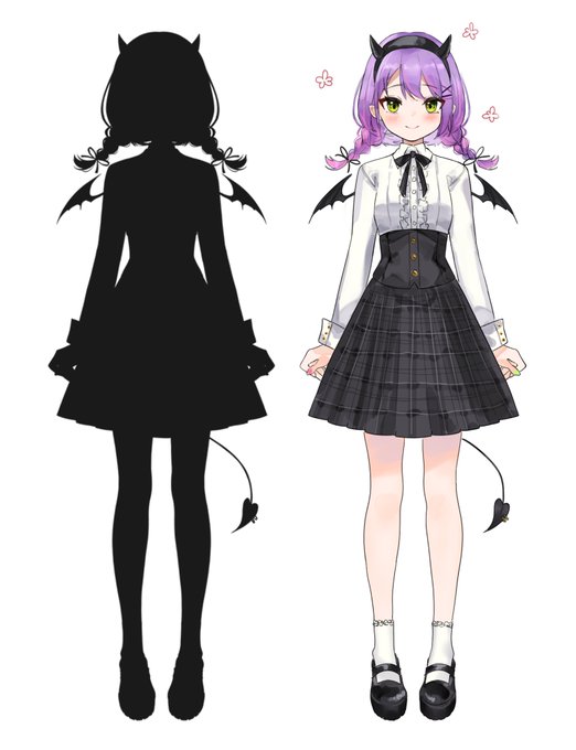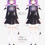 #常闇トワ新衣装予想 悪魔的なのに天使イメージしかないので 悪魔と天使の間ということで白黒カラーにしてみた…! 上着着てそうなシルエット部分あったんだけどホロライブサマー取り入れてくると考えて肌色多くしてみまんた