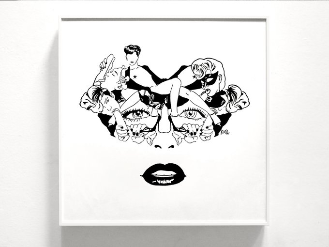 #ジェンダーバランス を意識したのか定かでないけど、メンズヴァージョンのオーラルモチーフマスク描こうと思う言うてて1年近く経過してやっと実現したよ。代々木上原 #ナイマ で開催中の #幡ヶ谷仮面展 hatagaya-kamen.tokyo で展示中! #kentaueoka #sixtyninefactory #ウエオカケンタ #イラスト