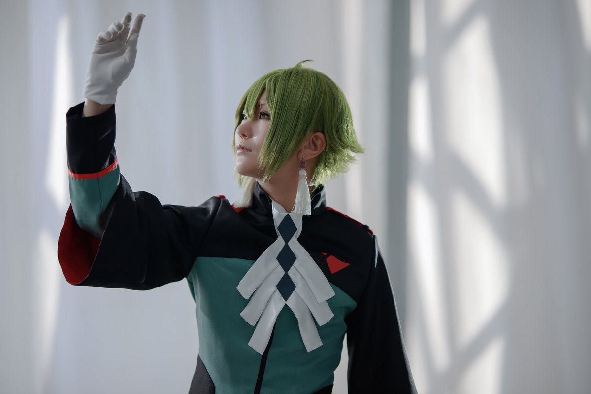 【cosplay】水星の魔女/エラン・ケレス 実はグリーン系のシャドウを入れたんですけどわかる…?全然わからないかも、これはウィッグの角度が最高の時の写真 photo:ユーイチ #平和な水星の魔女併せ0211