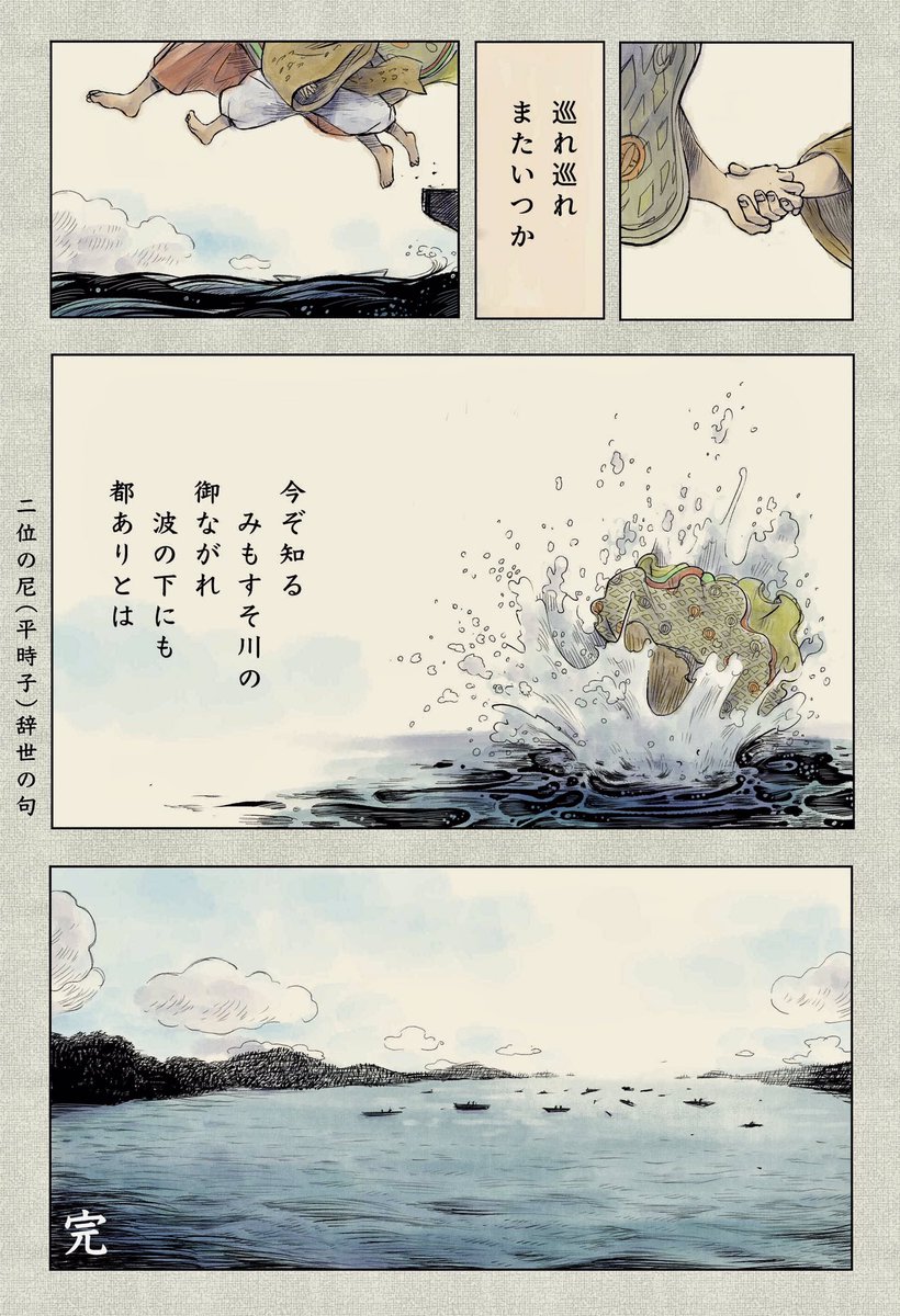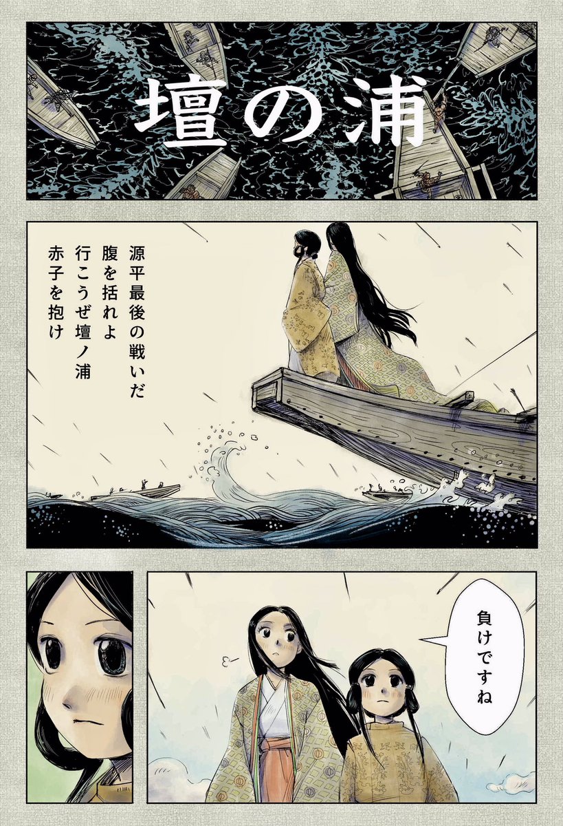 完成しました。 「壇ノ浦」<2022版> 壇ノ浦の戦いを描いた3ページ漫画です。 1年半前の作品をリメイクしました。前回はアナログで今回はデジタルです。ミーハー嫌いのクセにアニメ放映中に被るようなことをする間抜けです。#漫画が読めるハッシュタグ #平家物語 #イラスト