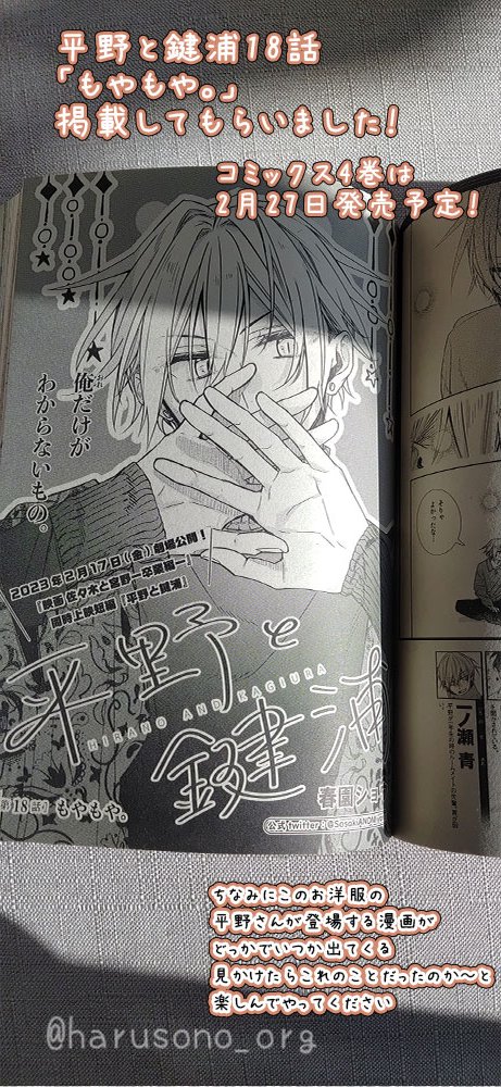 仕事終わらなかったので今日もらくがき19時です!よろしくお願いします! あと明日 2月27日は #平野と鍵浦 4巻発売日です!電子版は多分日付変わった0時位から配信されるかも! 特典情報等、以下URLにまとめてます! harusono.fanbox.cc/posts/4936615 よろしくお願いします!
