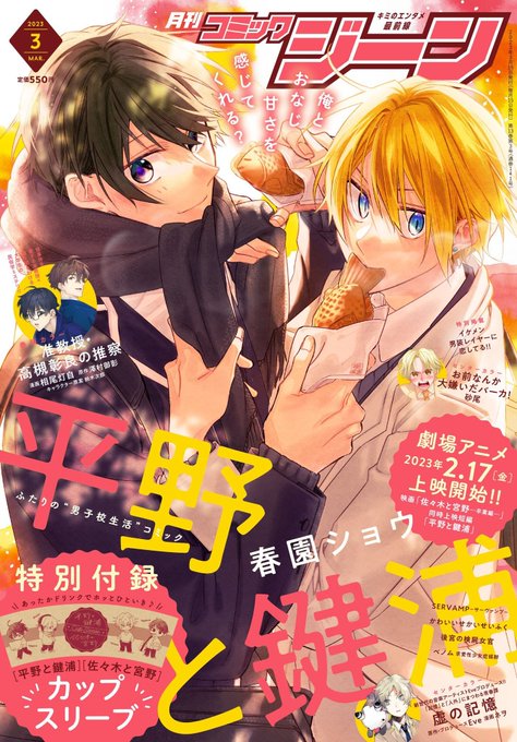 【お知らせ・描き下ろし】 発売中のジーン1月号の付録、2023年カレンダーに、#平野と鍵浦 で参加させていただきました。 編集部さま、読者のみなさま、機会をいただきありがとうございました!久しぶりに人間が集合してる様を描けて楽しかったです。 よろしくお願いします! twitter.com/comicgene/stat…