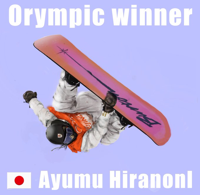 平野歩夢選手、おめでとう🎉🥇🎉 ショーン・ホワイト選手との抱擁は目頭が熱くなりました😭 ショーン選手から素晴らしい場所、素晴らしい結果でバトンを受け取りましたね😄👍 #平野歩夢 @AyumuB #北京2022オリンピック #Beijing2022 #スノーボード男子ハーフパイプ #落書き #イラスト