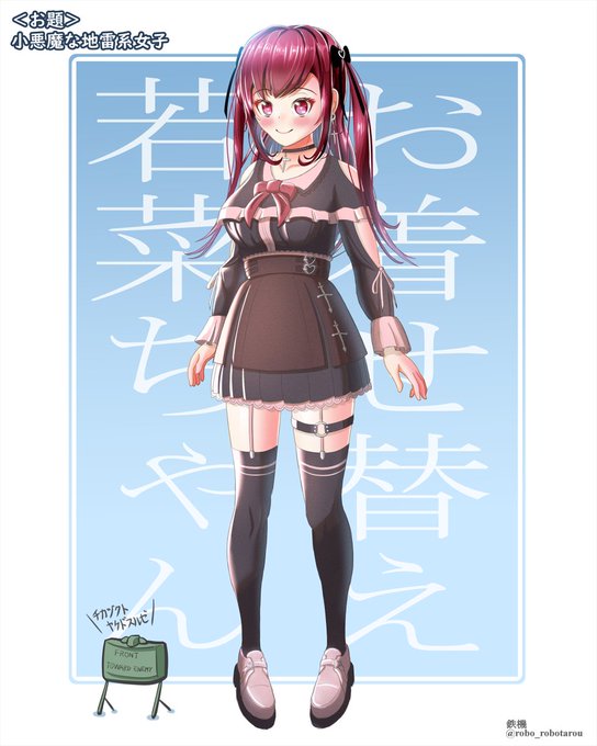 フォロワーさんから着せ替え案を募集した若菜ちゃんイラスト、まずはこれを描いてみた~! ■お題「小悪魔な地雷系女子」 地雷系ファッションと呼ばれる服や小物類をフル装備させ、全体としては黒ベース+ピンクという変化球気味でまとめてみた。サークラしそう #うちの子 #年上幼馴染の若菜ちゃん
