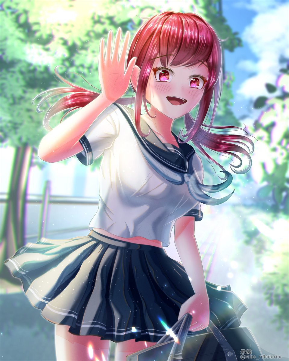 とある7月の帰り道、テスト期間が終わったらそろそろ休みが始まるね~なんていう話をしていたら「ね、最初はどこに行こっか?」と当然のように予定を抑えて来る年上幼馴染ちゃんを描きました #イラスト #うちの子 #年上幼馴染の若菜ちゃん