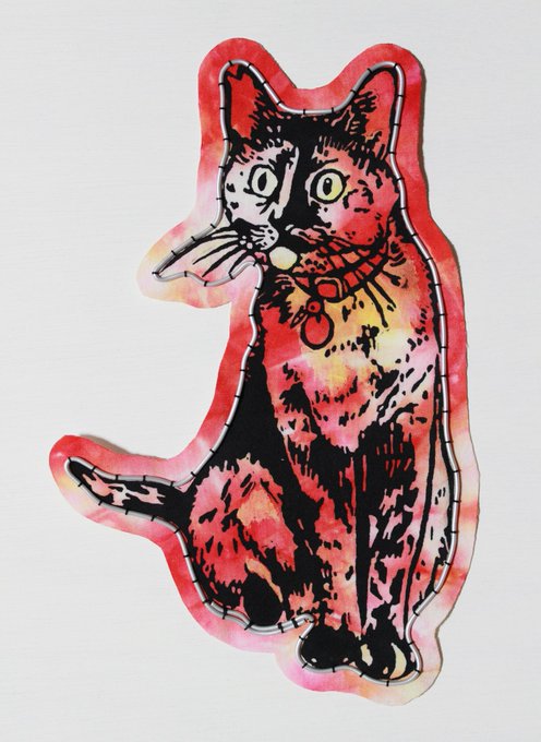 *去年の個展作品その5 ネコを描いて布に染めました🐈⬛ #新年早々の創作クラスタフォロー祭り #年末年始はSNSなんでも展示会で繋がろう #art #みんなで楽しむTwitter展覧会 #猫好きさんと繋がりたい