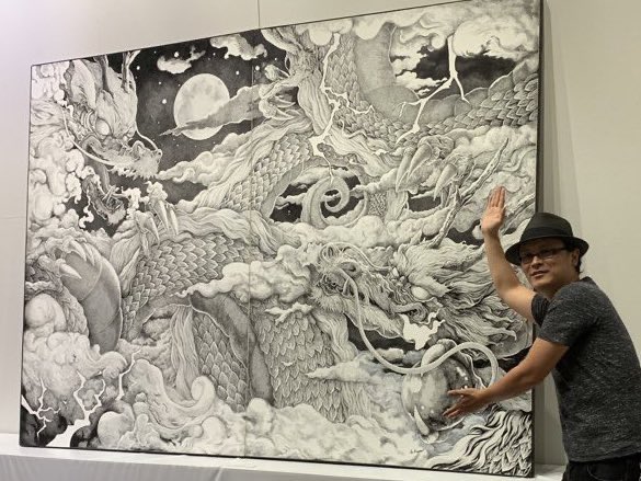デッカいキャンバスに丸ペンとアクリルインクで線描を描いてます。 #年末年始はSNSなんでも展示会で繋がろう #楠森道剛 #michitakakusumori #ペン画 #pendrawing #artwork #art #hatching
