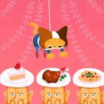 楽しい休日も、美味しいお食事も、目の前の仕事が終わるまで全部お預けだ。頑張れ俺、頑張れ世界の何処かのキミ! #ネコキャット #猫と仕事とまた仕事と #年末進行 #終わらない #フリーランス #グラフィックデザイン #イラスト #illustration