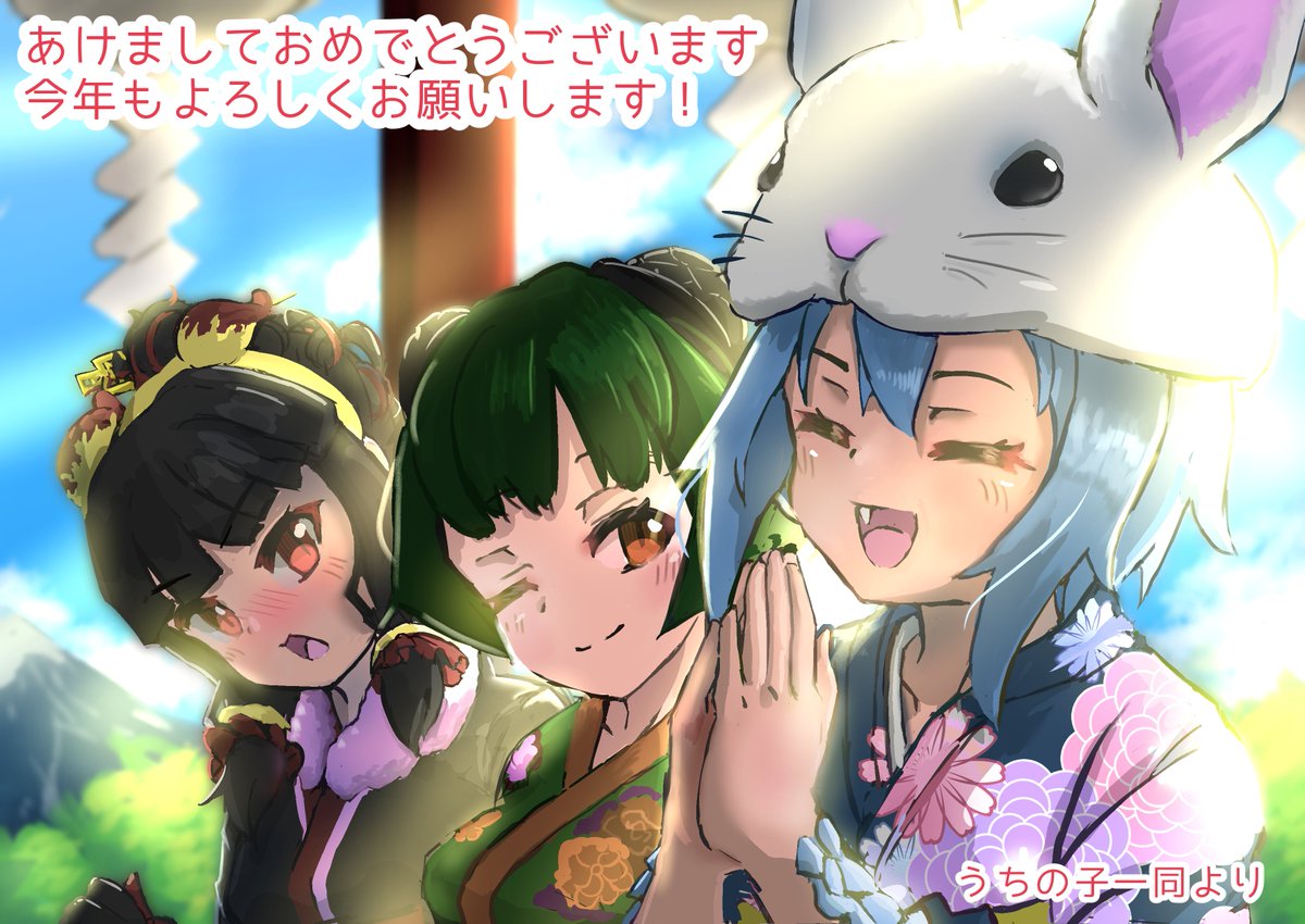 「ちょ、ちょっと、願い事は静かにしなさいよ!」 注意するニューティア、 リザは何を祈ったんでしょうね?🤭 マールもうれしそう! 新年あけましておめでとうございます! 2023年もよいお年にしましょうね!! あらためてうちの子たちもよろしくお願いします。 #年賀イラスト #HappyNewYear