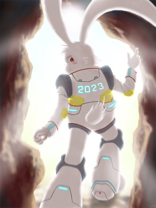 さあ2023年の到来だ Happy New Year 2023 「今年はどうなるのかな」よりも「こうするぜ」と思って行動する。生きる意味が分からなければ自分で作り出す。今現在をしっかりと大切に生きる #イラスト #絵描き #アート #年賀状 #ケモナー #卯年 #年賀状アート2023 #うさぎ #illustration #furryartwork