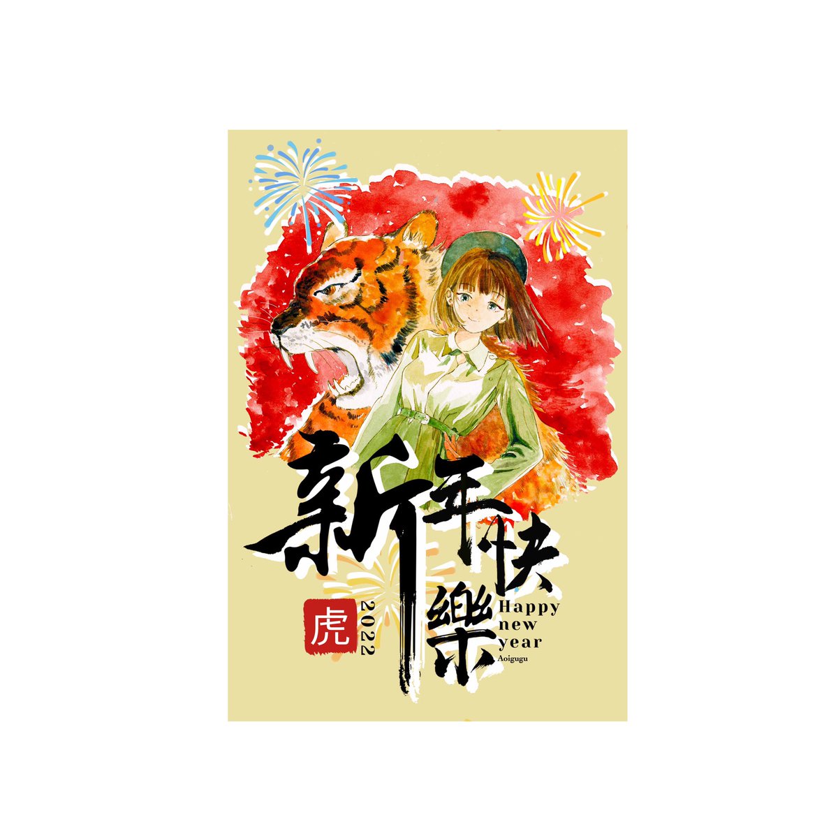 あけおめ🌅 🐅🐯🌄🎇 (因みに旧正月はまだなんで、今さらだけど年賀状描くのはギリギリセーフだと思う) #絵柄好みって人にフォローされたい #絵描きさんと繋がりたい #イラスト #創作 #漫画家志望 #新年早々の創作クラスタフォロー祭り #年賀状 #年賀状デザイン #水彩画 #watercolorart