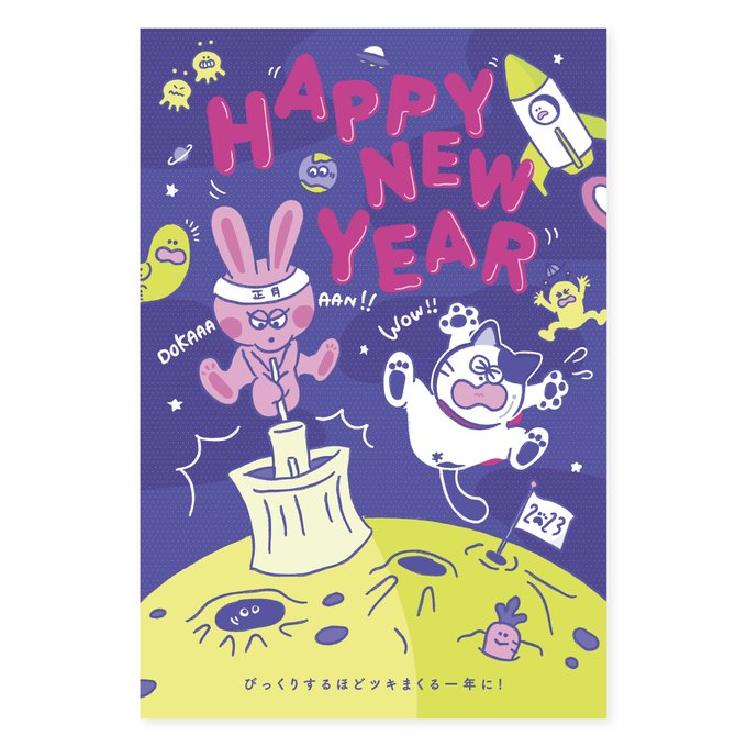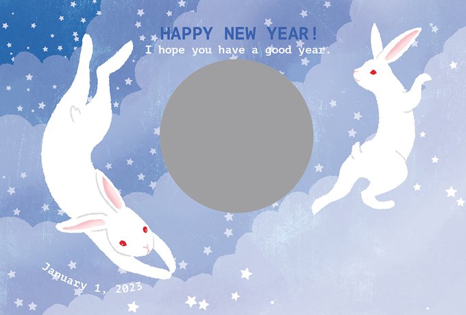 【お仕事】2023卯年賀状のお仕事をいろいろやらせていただいています。どこかで見かけましたら「あ、写真枠が月なわけね〜」と思っていただければ幸いです。 #adobefresco #illustration #年賀状デザイン #年賀状