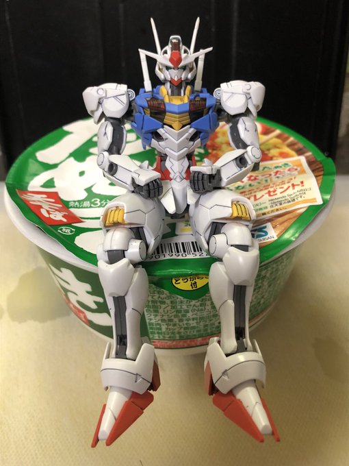 #ガンプラの画像貼るとRTされると聞いて とりあえずHGエアリアルの本体を組み終わったんで #年越しそば で一服。 乗って安心、押さえて安全のエアリアルだからな(違 しかし後は武器だけだが相変わらずの手の遅さで #年末モデリング が年越しモデリングになりそうだな。
