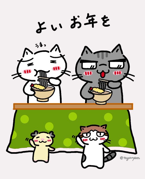 #年越しそば #描き納め 2022年ありがとうございました! たくさんの感謝です(=´∀`)🍀 来年もよろしくお願いします(^. ̫ .^ )🌟 #イラスト #illustration #ゆるいイラスト #絵描きさんと繋がりたい #白猫 #猫 #しろねっこ #みんなで楽しむTwitter展覧会