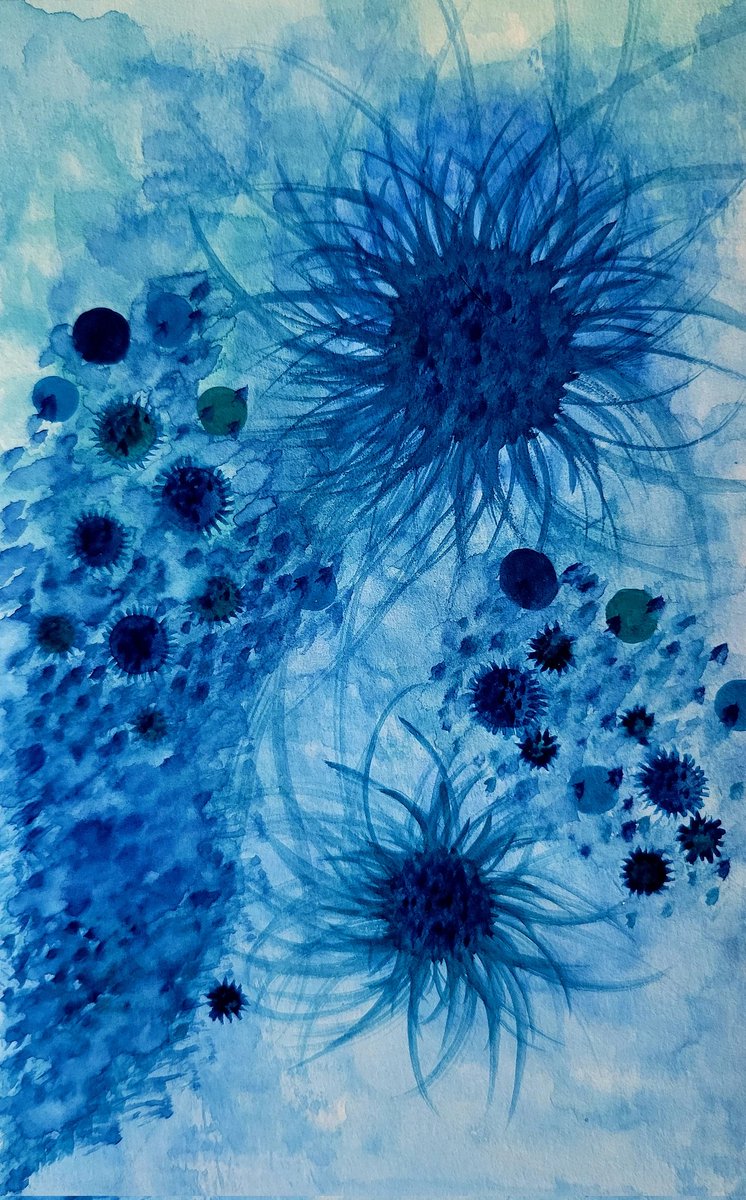 アクリル画 No.37 #サウスケ #ピーターパンシンドローム をききながら描いたよ #芸術の輪 #art #抽象画 #花 #SoundSchedule #みんなで楽しむTwitter展覧会 #空色 #紗龔愛裡紗 #サリュウアリサ #幸せになるために