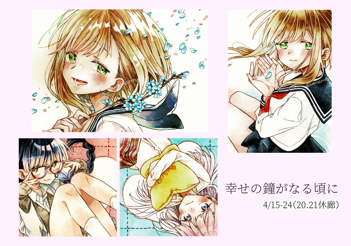 4/15(土)〜24(月) にGallery glad.さん(@mk_tenji)にて開催されます #幸せの鐘がなる頃に へ参加させていただきます! 小さめではありますがたくさんイラストを描かせていただきましたのでどうぞよろしくお願いいたします〜!