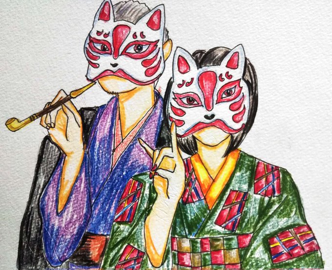 ギリギリ滑り込み...💨 妖しく美しい幻空堂さん(@genkudou)のイメージを落とし込めたら...と描いてみました...☺️ 昔友達と一緒にお面を買わせていただいた時からファンです...✨ 個展おめでとうございます~~🎉 #幻空堂 様 #幻空堂ファンアート #幻影展