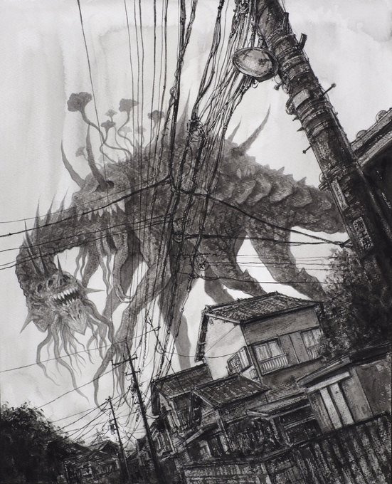 ギャラリーソラトの展示「幻想生物博物館16」今日から始まります 出品する作品一枚「幻想記憶(一)」 原画の販売もおこなっています よろしくお願いします blog.goo.ne.jp/sawsinplusb/e/… #怪獣アート #水彩 #幻想生物 #絵描きさんと繫がりたい #絵画