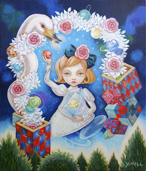 〈月の宿る〉油彩 【Mini○(ミニマル)展 】出品中です 5 /21 (土)-6 /10 (金) 2022 SANSIAO GALLERY 東京都中央区日本橋3-2-9 三晶ビルB1F 12:00-19:00 日月休 #popsurrealism #kawaiiart #artwork #fantasyart #art #幻想絵画 #幻想美術 #アート #絵描きさんと繋がりたい #painting #illustration