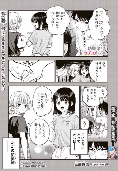 【更新】「幼馴染とはラブコメにならない」第25話が更新されました! 2人の幼馴染から別々に花火を誘われたえーゆー 頭を冷やそうと人混みを避け、茂みに入った先では幼馴染の1人がキス練をしていて?ー 本編→mgpk-api.magazinepocket.com/landing?t=1648 ■単行本第一巻発売中です! amazon.co.jp/dp/4065286360 #幼ラブ
