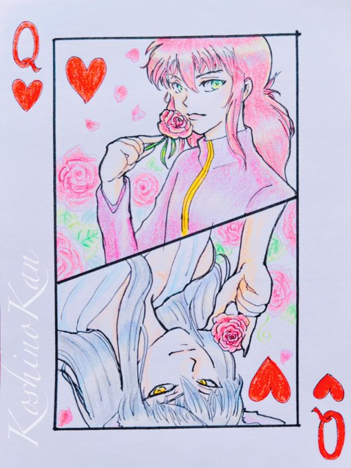 🌺夏先取り🌺 🦊「いらっしゃい、何名様?」 って蔵馬に接客されたいー💕💕💕 とか妄想しながら何とか完成🎵 この2人大好きー😆💖💖💖 他の推しトリオもどっかで描きたいなぁ🎶🎶幽白フェス最高✨✨ #幽白フェス #みんなで楽しむTwitter展覧会 #イラスト好きさんと繋がりたい