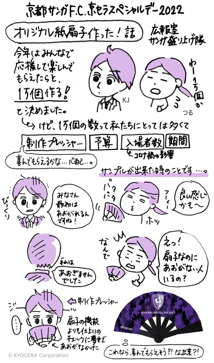 京セラ社員のちょっとした毎日 40回目「#京都サンガ 京セラスペシャルデー紙扇子」 #エッセイ漫画 #Twitter漫画 #広報室の日々 #京セラ #sanga #サンガ京セラデー2022