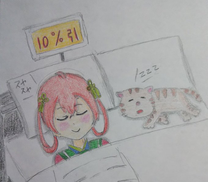スヤスヤ眠る #広島たん 描きました。zzz🐈️← #ビッカメ娘 ( #ナイセン ) #ビッカメ娘を描き隊 #色鉛筆 #絵描きさんと繫がりたい twitter.com/bic_hiroshim…