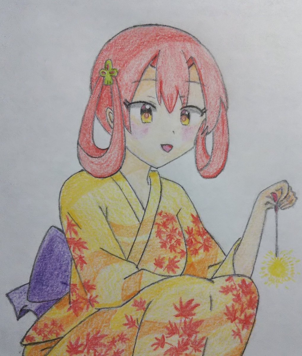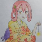 #8月24日は広島たん擬人化6周年 #広島たん 、おめでとうございます!🎉🎂✨🎁✨ヽ(≧▽≦)ノ🍁🐈️ お祝いにイラストを描きました!🍁🐈️🍁 #ビッカメ娘 ( #ナイセン ) #ビッカメ娘を描き隊 #模写 #色鉛筆 #絵描きさんと繋がりたい