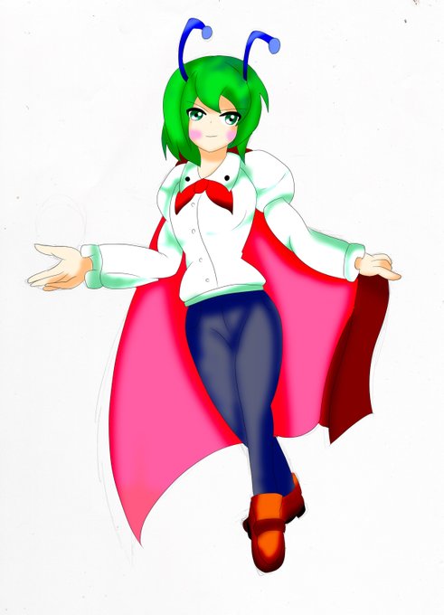 #リグル #落書き #東方project #広島弁チルノシリーズ ワンドロには1体しか出品できないので、出品しなかった方(リグル)をここで出します うちのシリーズでは、味方の防御力を上げたり、自分を1ターン無敵にしたりと、その性能は玄人好みの様です