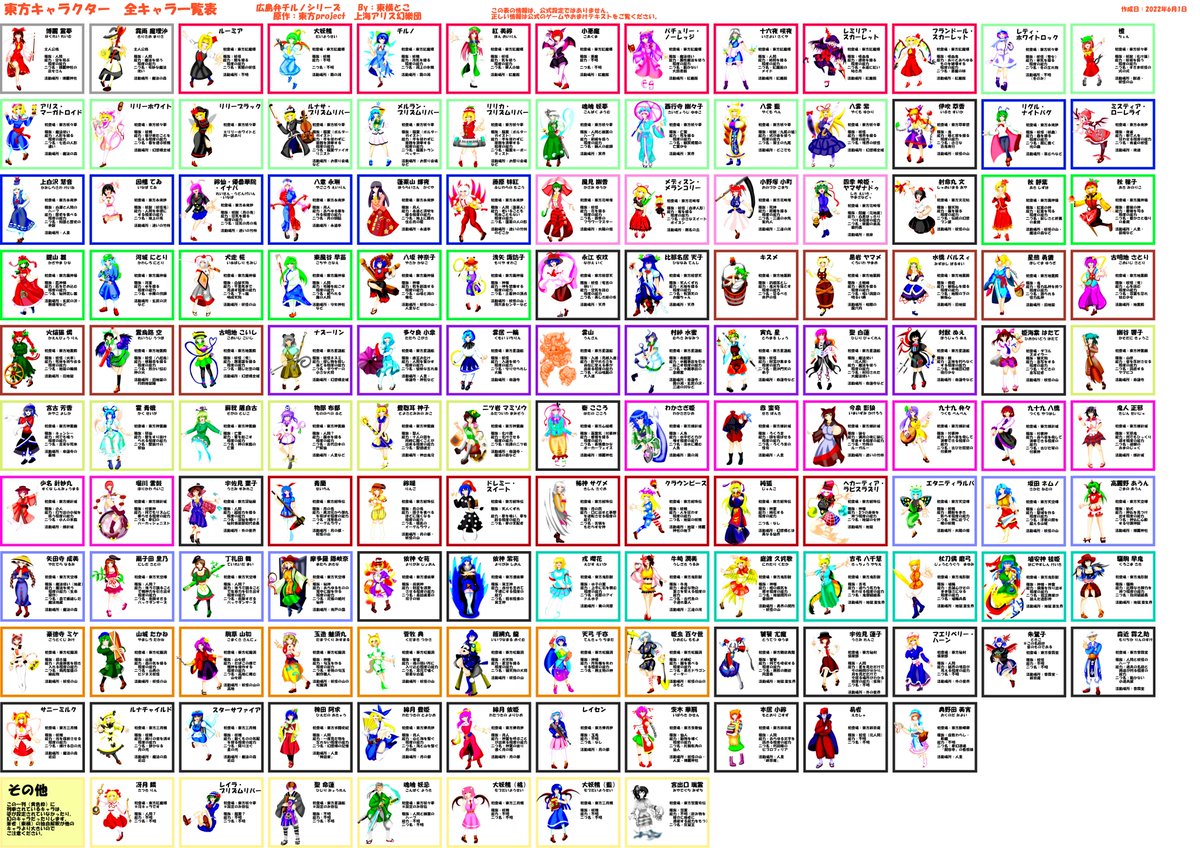 #東方Project #広島弁チルノシリーズ #イラスト #東方キャラまとめ #東方絵描きさんと繋がりたい 東方全キャラチャレンジ リツイート 拡散 されてみてもらえると嬉しいです 全キャラの登場作品・種族・能力・二つ名が一目でわかる一覧表を作成しました これがあればいちいち調べなくていいね💛