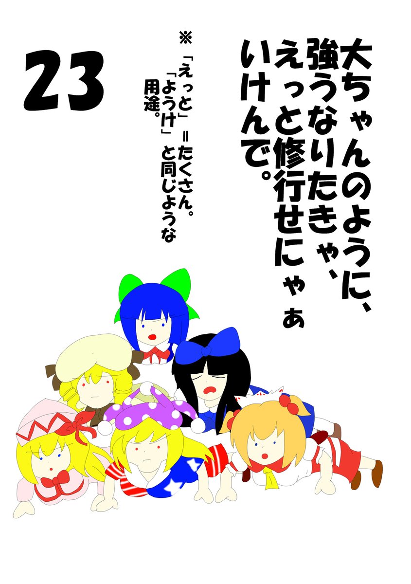 #東方project #毎日9月はチルノの日 #チルノ #絵描きさんと繋がりたい #9月の30日チルノチャレンジ #30日チャレンジ #広島弁チルノシリーズ 9月の毎日チルノも、23日目になりました みんなで強くなろうとするチルノです 妖精名物?ピラミッド腕立て伏せをしてます 人間はマネしないでください