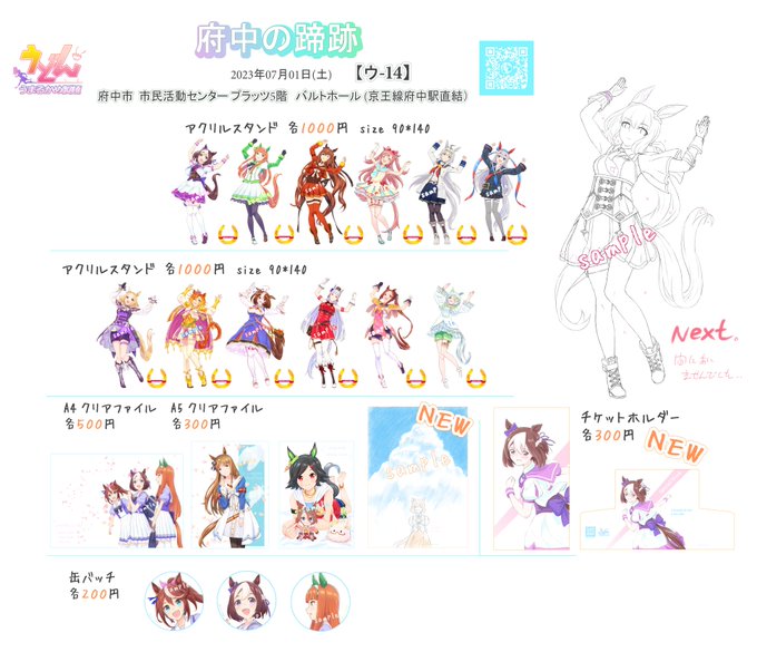 🌻 #府中の蹄跡 お品書き 当日はドトウコスで参戦します🌷 (すみません、夏制服です🙏) 会場直後は入り口付近混んでると思うので、ゆっくり来て下さいな〜☺️🩷 在庫はたくさんありますゆえ…! 🔻イベントHP sites.google.com/view/footprint…