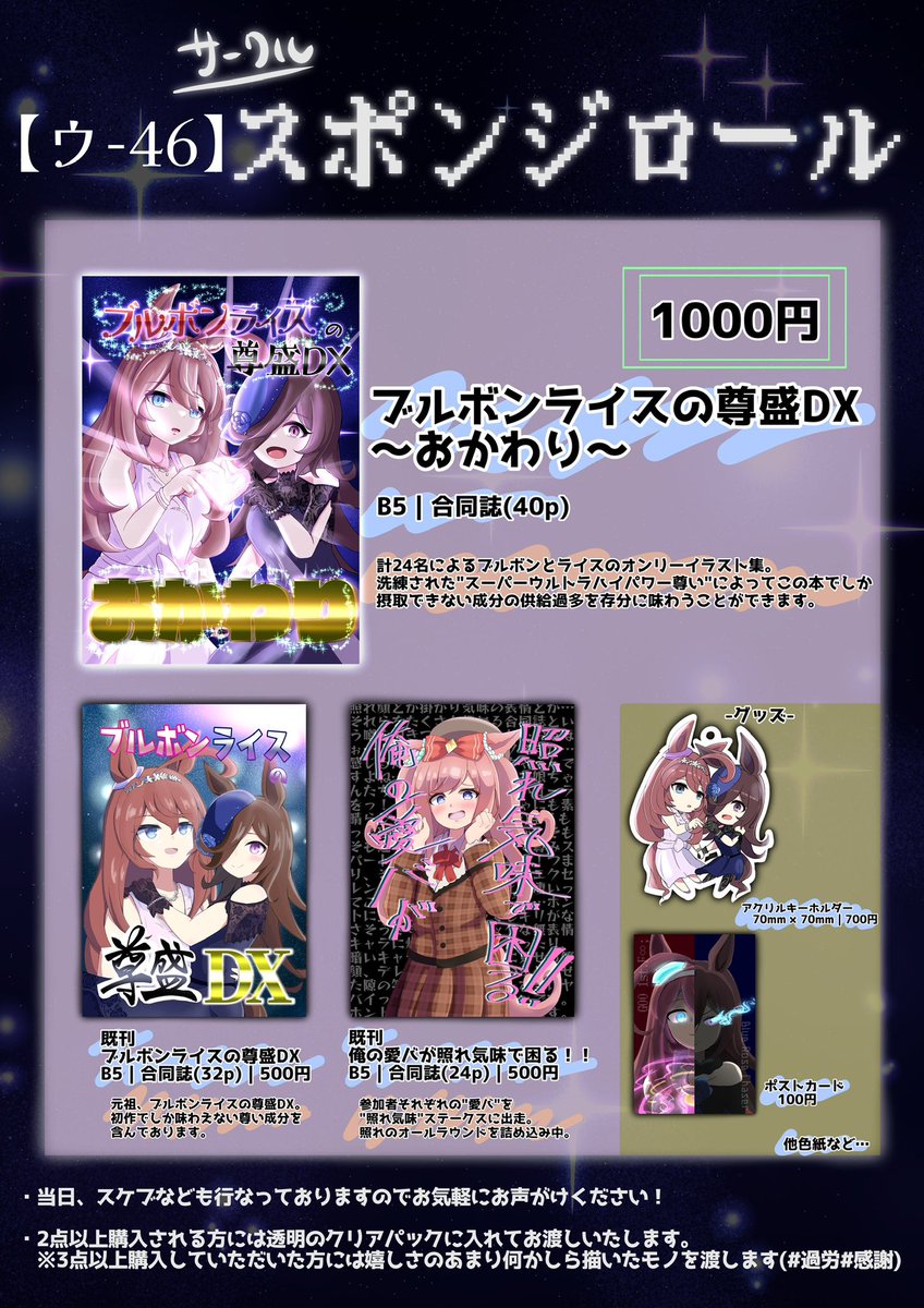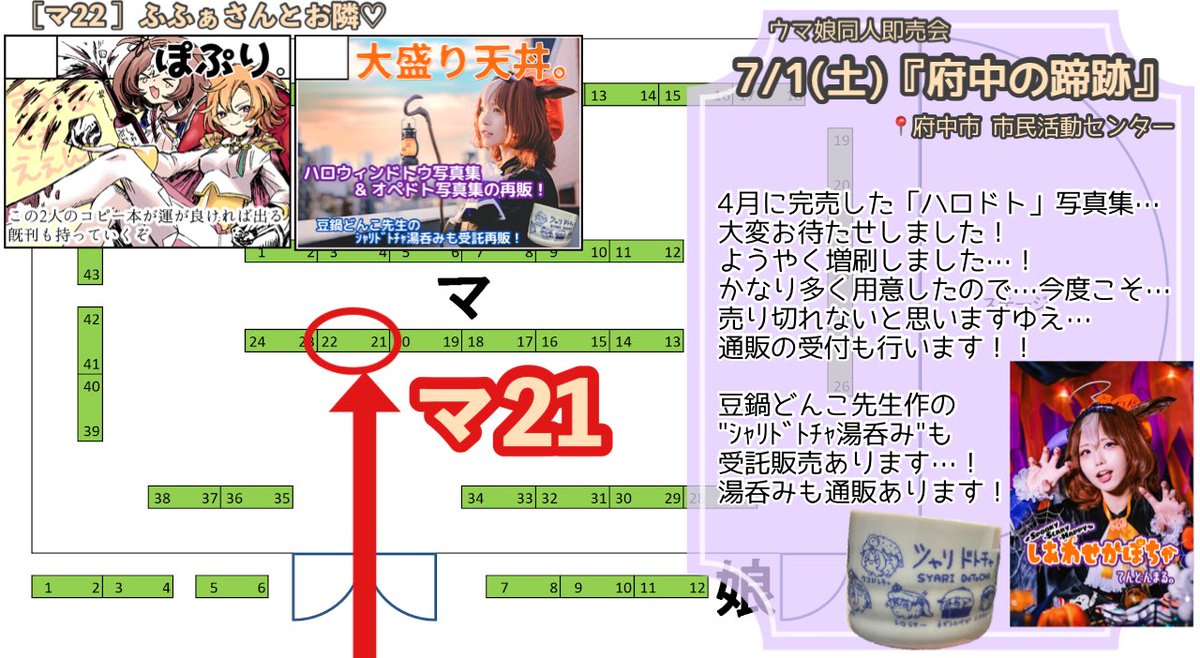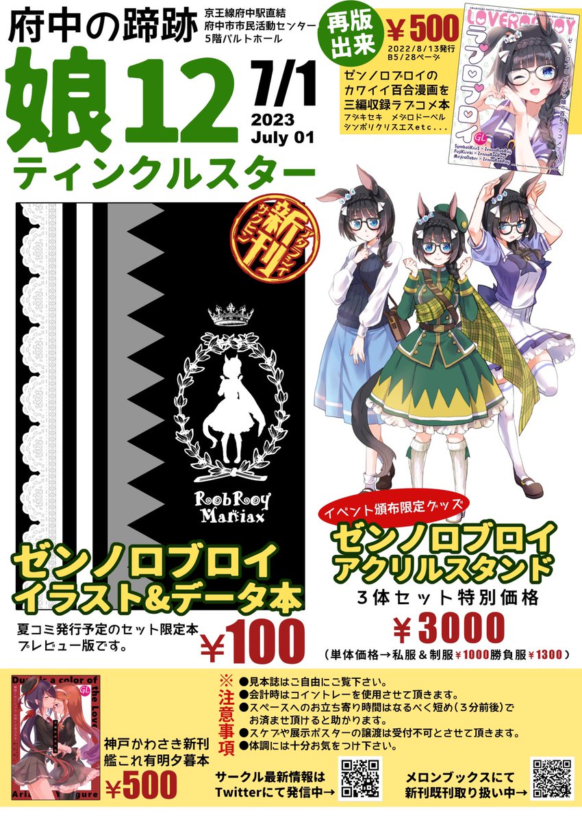 【告知】7/1(土)に府中にて開催されるウマ娘オンリー「府中の蹄跡」参加いたします。 新刊はゼンノロブロイの史実レース解説&イラスト本(コピー誌) 他にロブロイ百合本やアクスタ、神戸新刊の艦これ本も若干数持ち込みます。 【娘12】ティンクルスターにてお待ちしております。 #府中の蹄跡 twitter.com/ruru179/status…