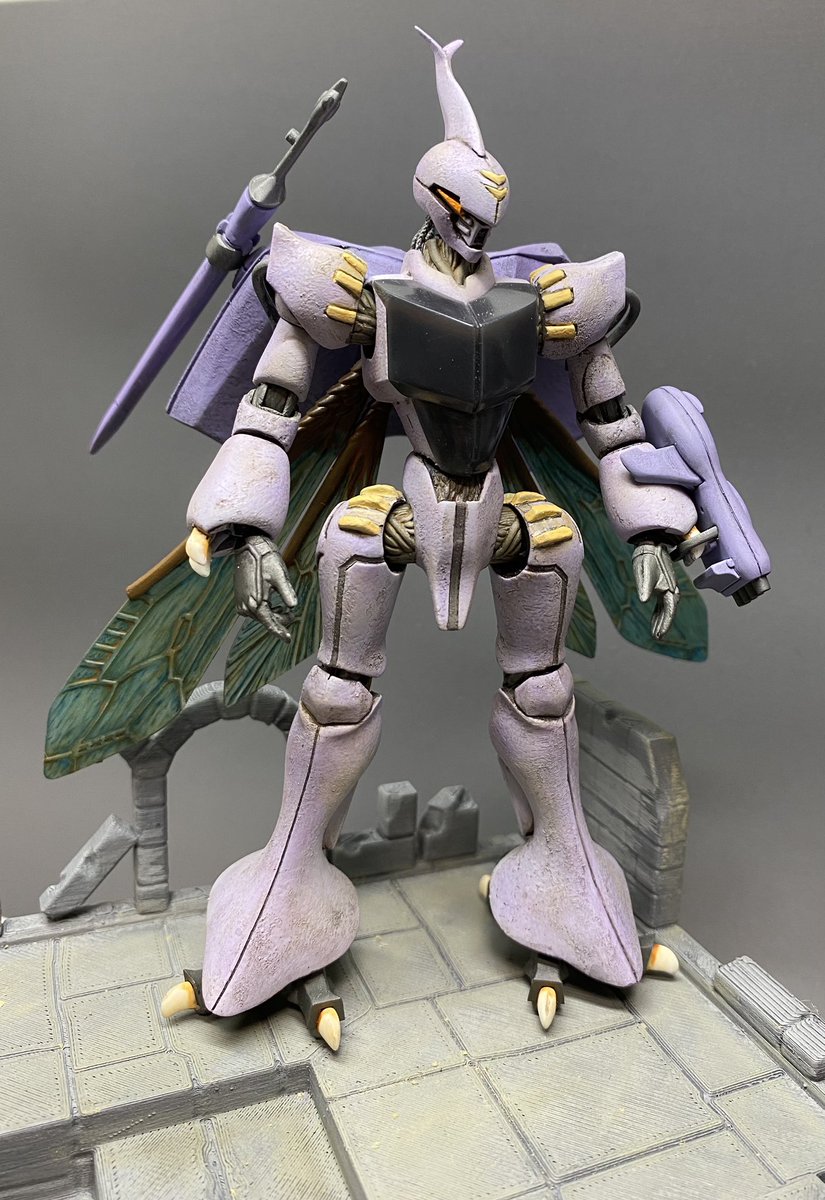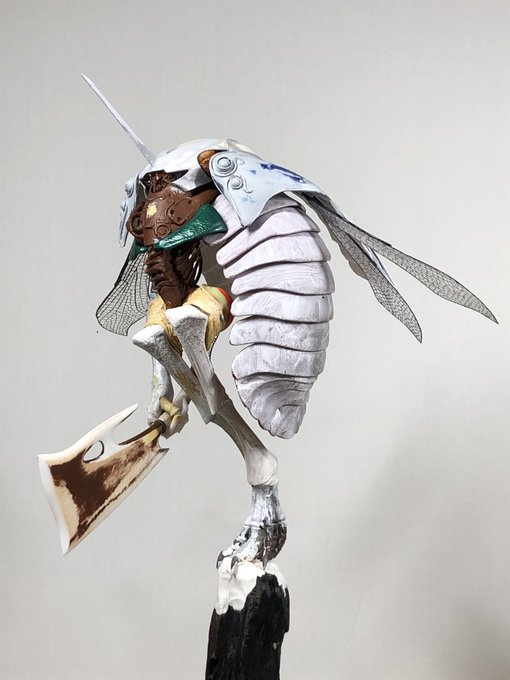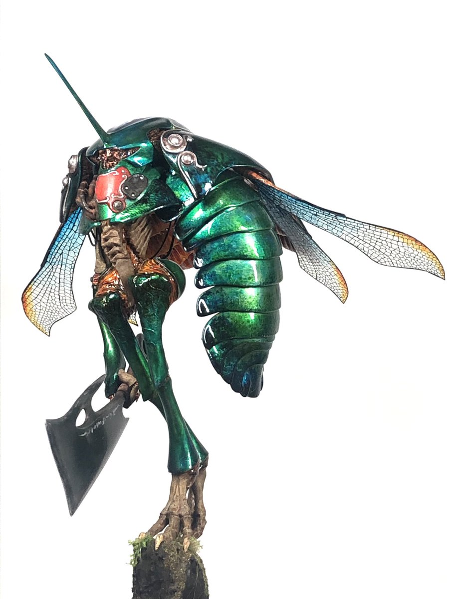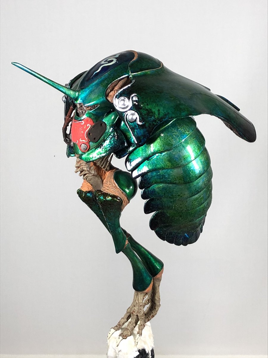 #今月作ったプラモ晒そうぜ #座間祥 #AB的なモノをABを使わずに作る 完成♪ 翅は、いつもお世話になっている平米屋さんのデカールを使わせてもらっています♫ 今回は、玉虫色をイメージして、シルバーの上にエナメルクリアーを筆で重ねてみましたが、中々イメージ通りとはいきませんでした(≧∇≦)